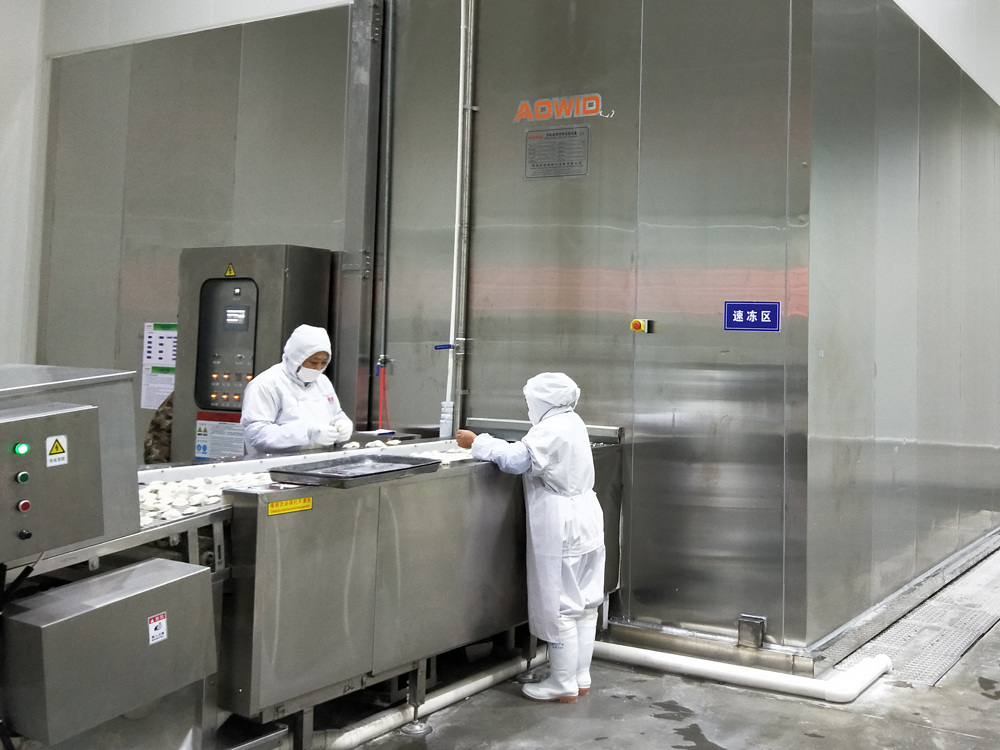 Introdução ao projeto: a Hebei Jiumeizhai Food Co., Ltd. foi criada em 2016. A empresa cobre uma área de 45 MU e tem um investimento total de RMB 120 milhões. Ele constrói principalmente oficinas de produtos rápidos e cozidos com congelamento rápido. Ao mesmo tempo, compra equipamentos avançados, como congelamento rápido, embalagem, armazenamento e logística. A produção anual de alimentos de congelamento rápido é de 50.000 toneladas, com um valor de saída de RMB 500 milhões. Destaques do projeto: o projeto adota amônia R717/dióxido de carbono R744 Sistema de Cascata/Refrigeração de Cold, que economiza energia, ambientalmente amigável, segura e eficiente. 1) Fase I: Rail deslizante Rotary (espiral) Freezer único: um total de 2 unidades de 2T/h, bolinhos de congelamento, consumo de refrigeração de 280kW/unidade, 2 unidades totalizando 560kW. (2) Fase II: Rail deslizante Rotary (espiral) Freezer único: um total de 2 unidades de 3T/H, bolinhos de congelamento, consumo de refrigeração de 420kW/unidade, 2 unidades totalizando 840kW. (3) armazenamento a frio de baixa temperatura: a capacidade total de armazenamento do armazenamento a frio de baixa temperatura é de aproximadamente: 5.100 toneladas. Armazém de produtos acabados: 3 quartos no total, com uma temperatura de armazenamento de -20 ℃, armazenando bolinhos congelados, com uma capacidade total de armazenamento de aproximadamente 4.600 toneladas; Armazém de matéria -prima: 1 sala no total, com uma temperatura de armazenamento de -20 ℃, armazenando peixes congelados e produtos de carne congelada, com uma capacidade de armazenamento de aproximadamente 500 toneladas.